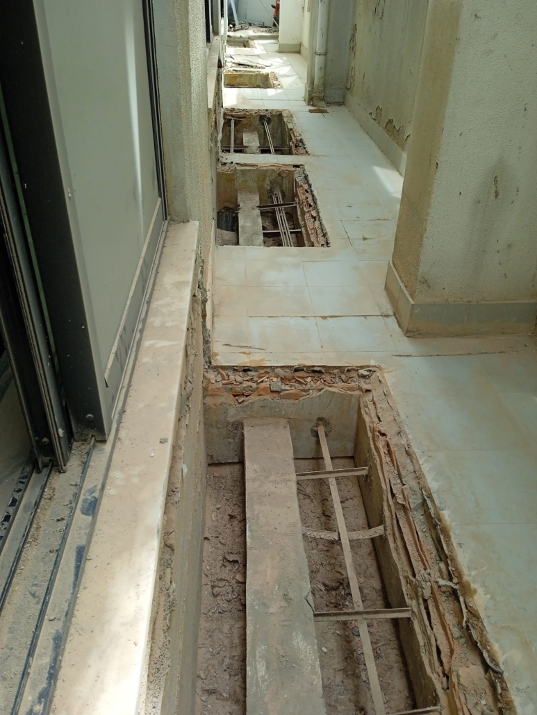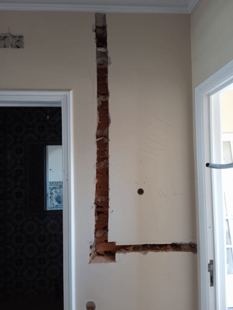 – Abertura roços água, eletricidade, esgotos e gás;